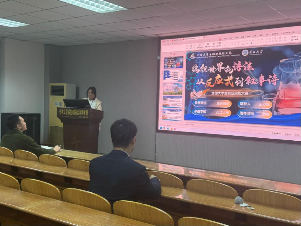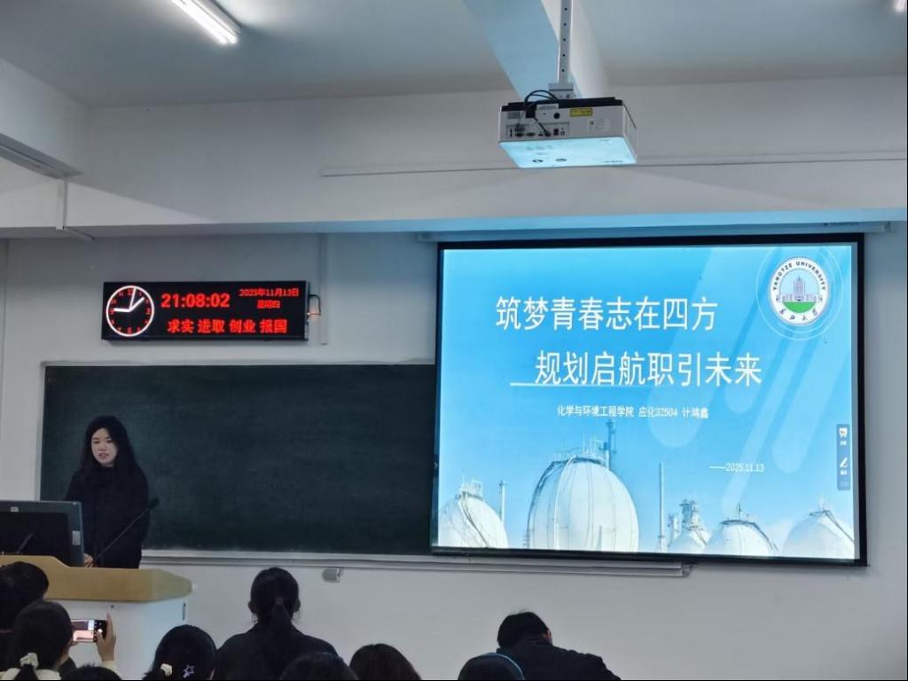成长赛道中,参赛选手们结合学院专业讲座和职业发展规划课程中所学的知识,全面且深入地展示了个人的职业目标、成长规划路径、实践行动方案、应对挑战的策略以及灵活的动态调整机制。应化32504班的计鸿鑫同学畅谈了她大学四年的学习与实践计划,展现了化工新人筑梦未来的蓬勃朝气。