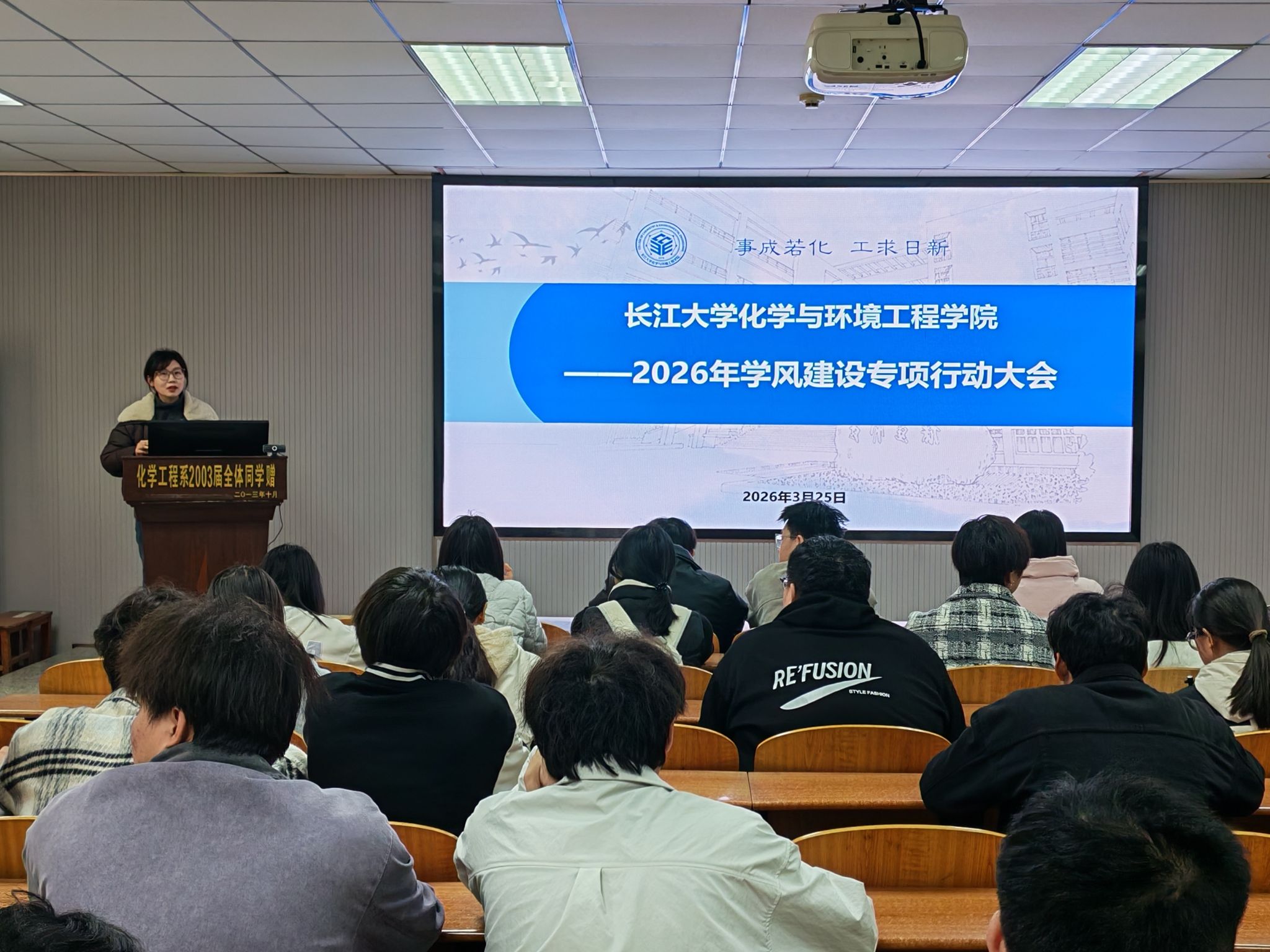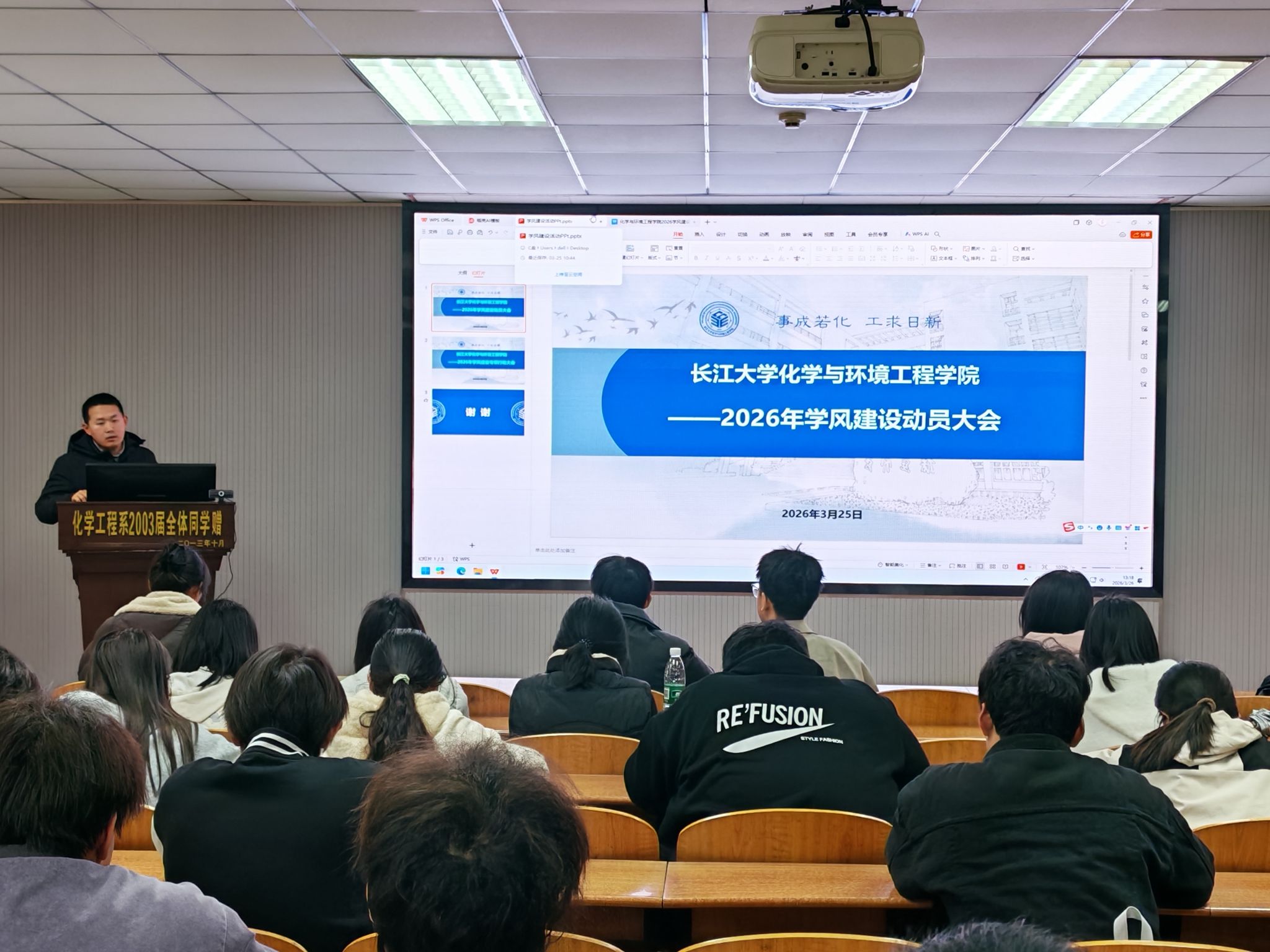 (通讯员 伍吉玥 蒲仪文)为全面落实立德树人根本任务,强化学风建设,化学与环境工程学院于3月26日12:30,在14教北201召开2026年学风建设专项行动动员大会,学工办主任王陈,辅导员王娜、周学素以及23级、24级学生干部参加会议。