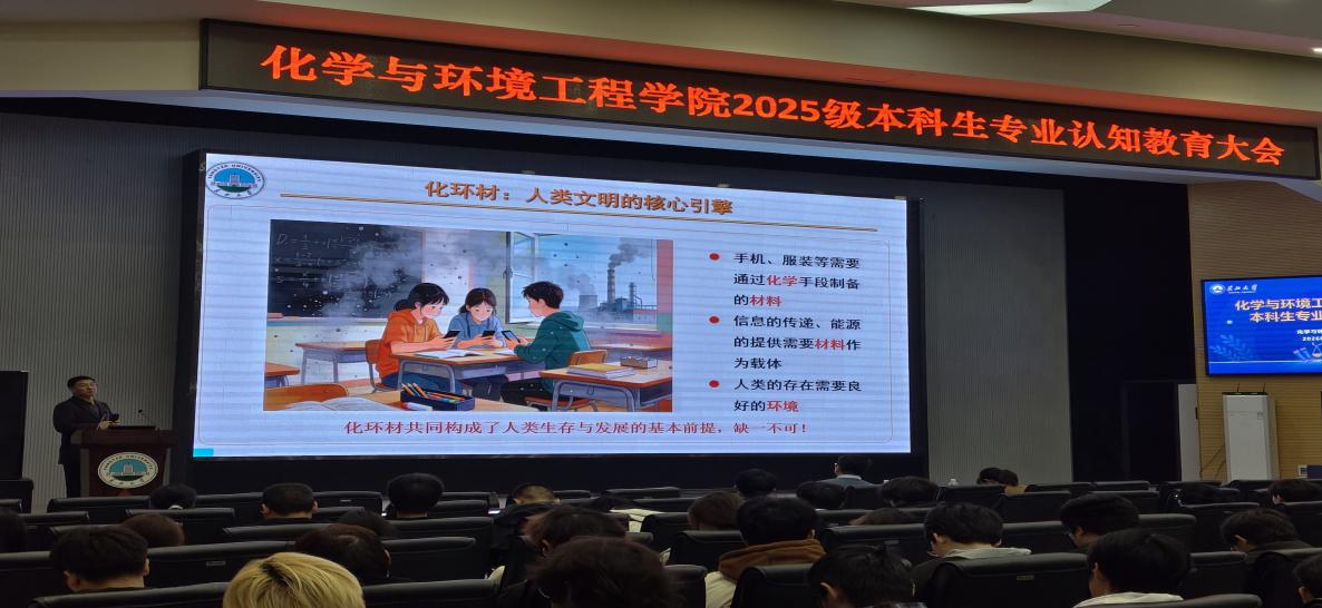 (通讯员 徐子朔)为帮助2025级本科生进一步深化专业认知,增强专业自信,激发学习热情,3月26日下午,化学与环境工程学院在西校区农科大楼1058报告厅举行本科生专业认知教育大会。学院党委书记王丽、副书记杨会军、辅导员徐茵以及2025级全体本科生参会。