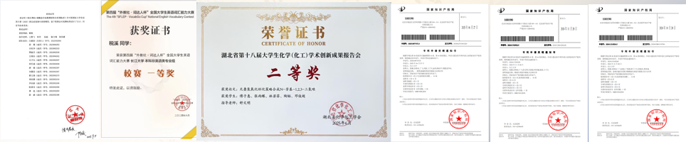 在各类赛事竞技中,班级学子更是屡创佳绩。在2025年中国国际大学生创新大赛湖北省复赛中斩获省铜奖;在湖北省第十八届大学生化学(化工)学术创新成果报告会上,荣获省二等奖;在荆州市2025年“创响荆州・建功支点”创新创业大赛大学生创业赛道复赛中,成功突破重围晋级决赛。